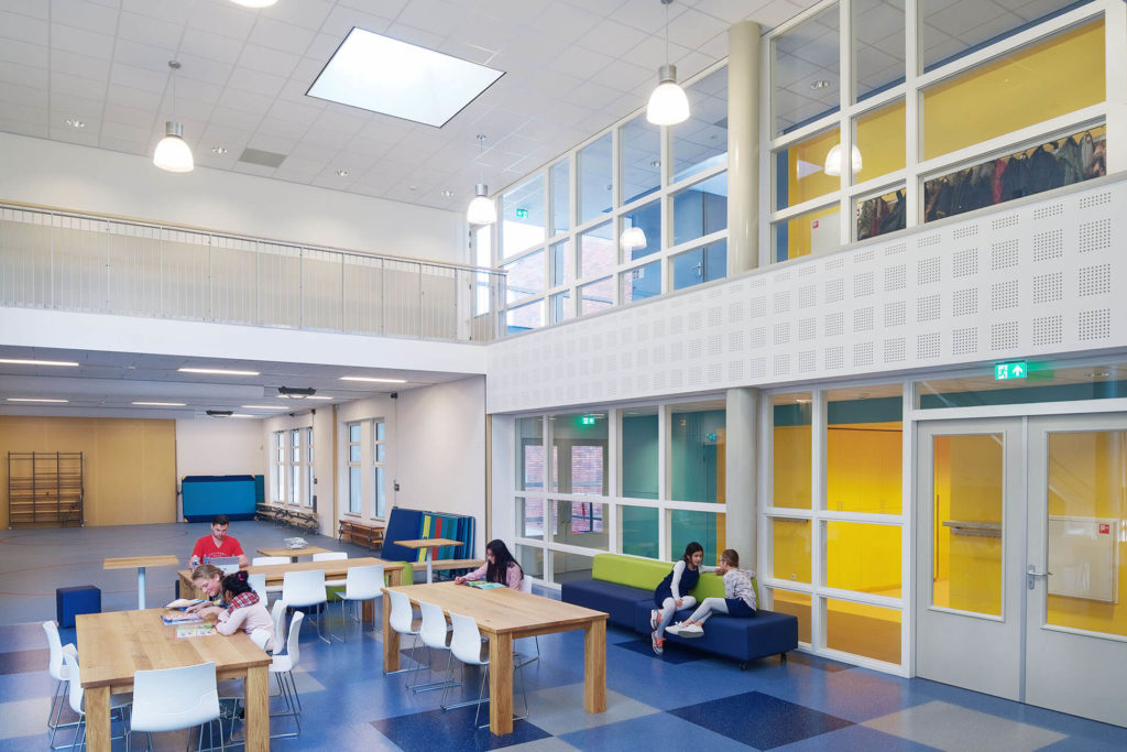Het gebouw voor de Pieter Jelles Troelstra school bestaat uit twee beuken met daarin vooral onderwijsruimten. Ze worden, net als in de voormalige H-school gekoppeld door een tweelaagse aula met daaromheen alle multifunctionele ruimten (speellokaal, beeldende vorming en muziek) en een verbinding met de gymzaal.